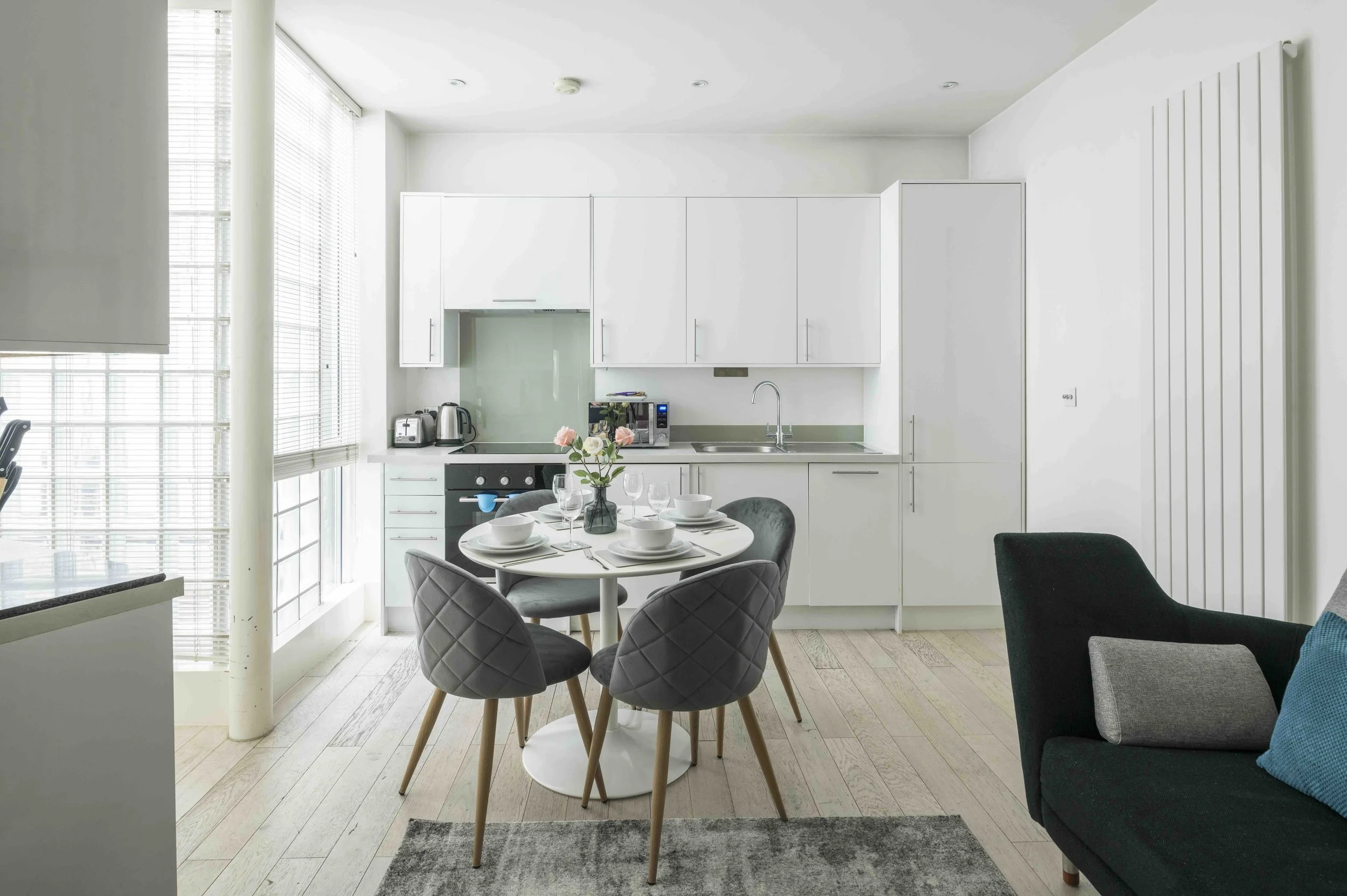 Fitzrovia Residences offer refined city living in a prime central London location. This elegant 2-bed apartment spans a generous 53 sq/m and is thoughtfully designed for comfort and style. The fully equipped kitchen features high-spec appliances including a full-size fridge/freezer, dishwasher and washer/dryer, while the living space is enhanced with a Smart TV and flooded with natural light.