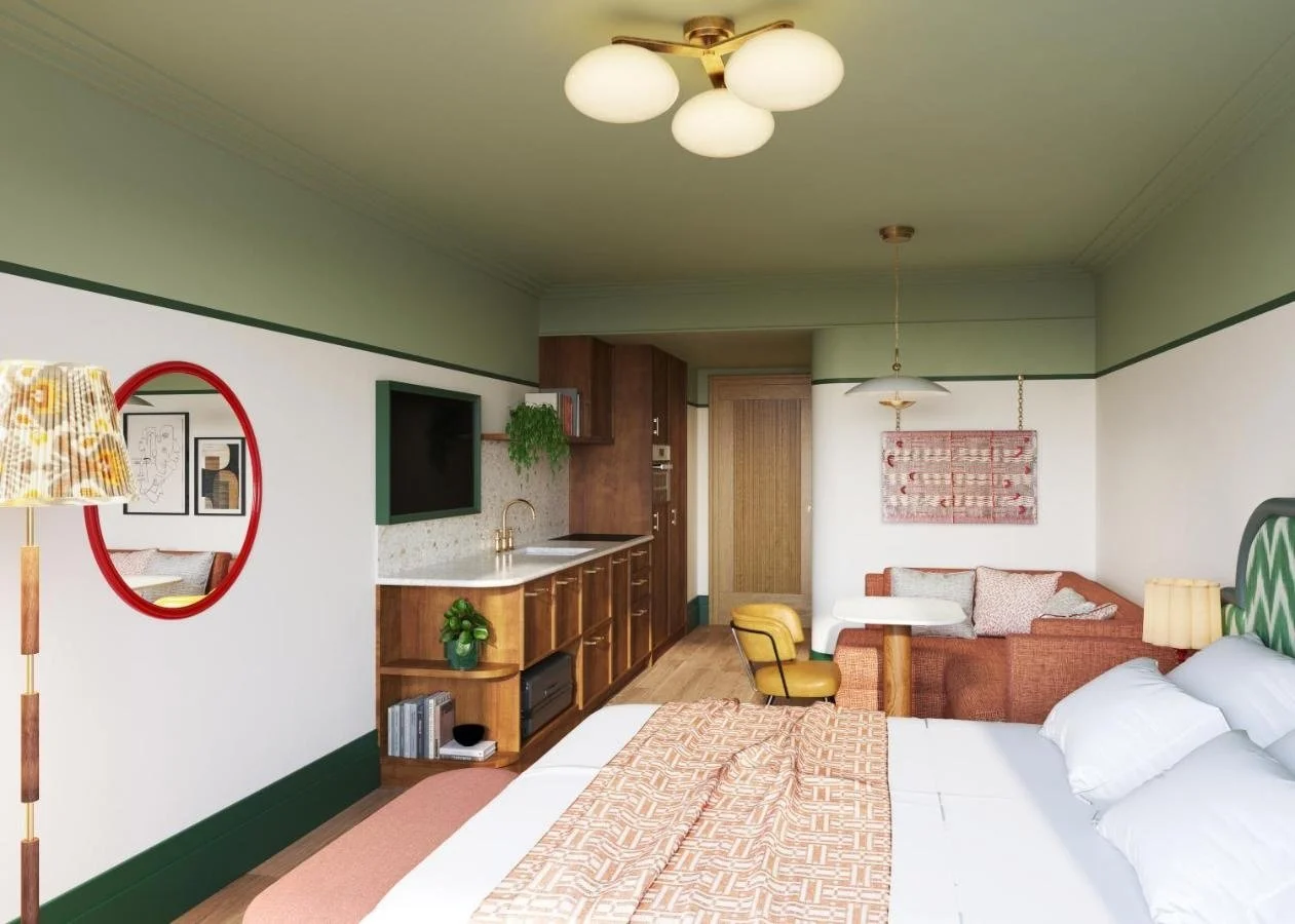 Our studio apartments provide a cosy retreat in the heart of the city, combining smart design with modern comforts. Each space includes a king-sized bed, a well-equipped kitchen with a dishwasher, air conditioning, and a flat-screen TV.