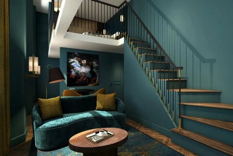 With a striking split-level design, the Duplex feels almost twice the size of a regular studio - bright, airy, and ideal for longer stays. Interiors are styled with rich dark tones, tweed fabrics, and parquet flooring, balancing warmth with contemporary elegance.