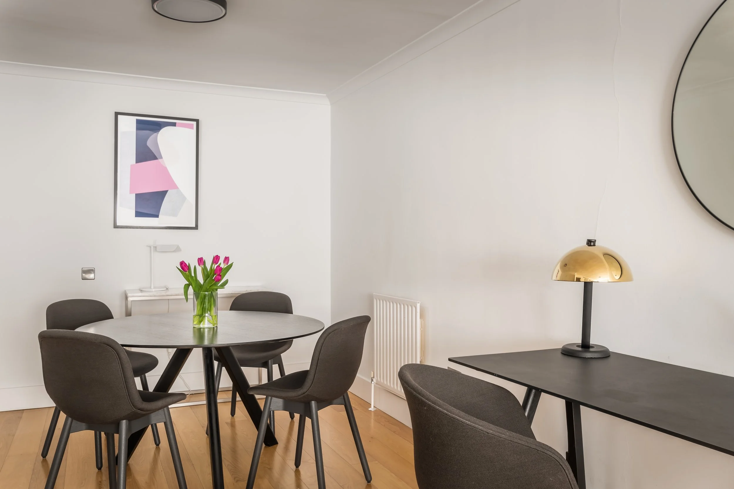 The bright living area is ideal for relaxing or entertaining, while the fully equipped kitchen features integrated appliances, a dishwasher, and in-unit laundry to make day-to-day living effortless. With lift access and modern touches throughout, these apartments provide a seamless and comfortable home base for your time in London.