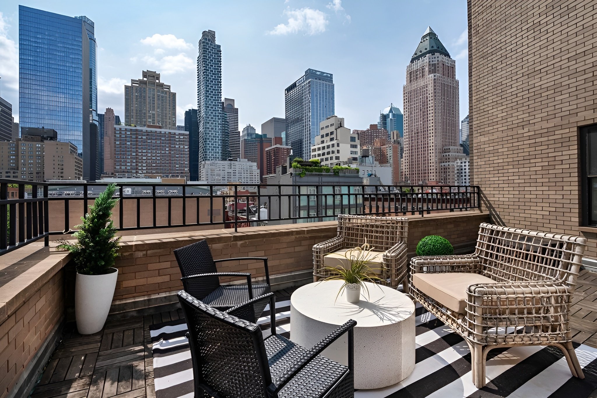 Furnished, high-spec apartments in Midtown West, Manhattan, offering modern interiors, private terraces, in-unit laundry, keycode access & more.