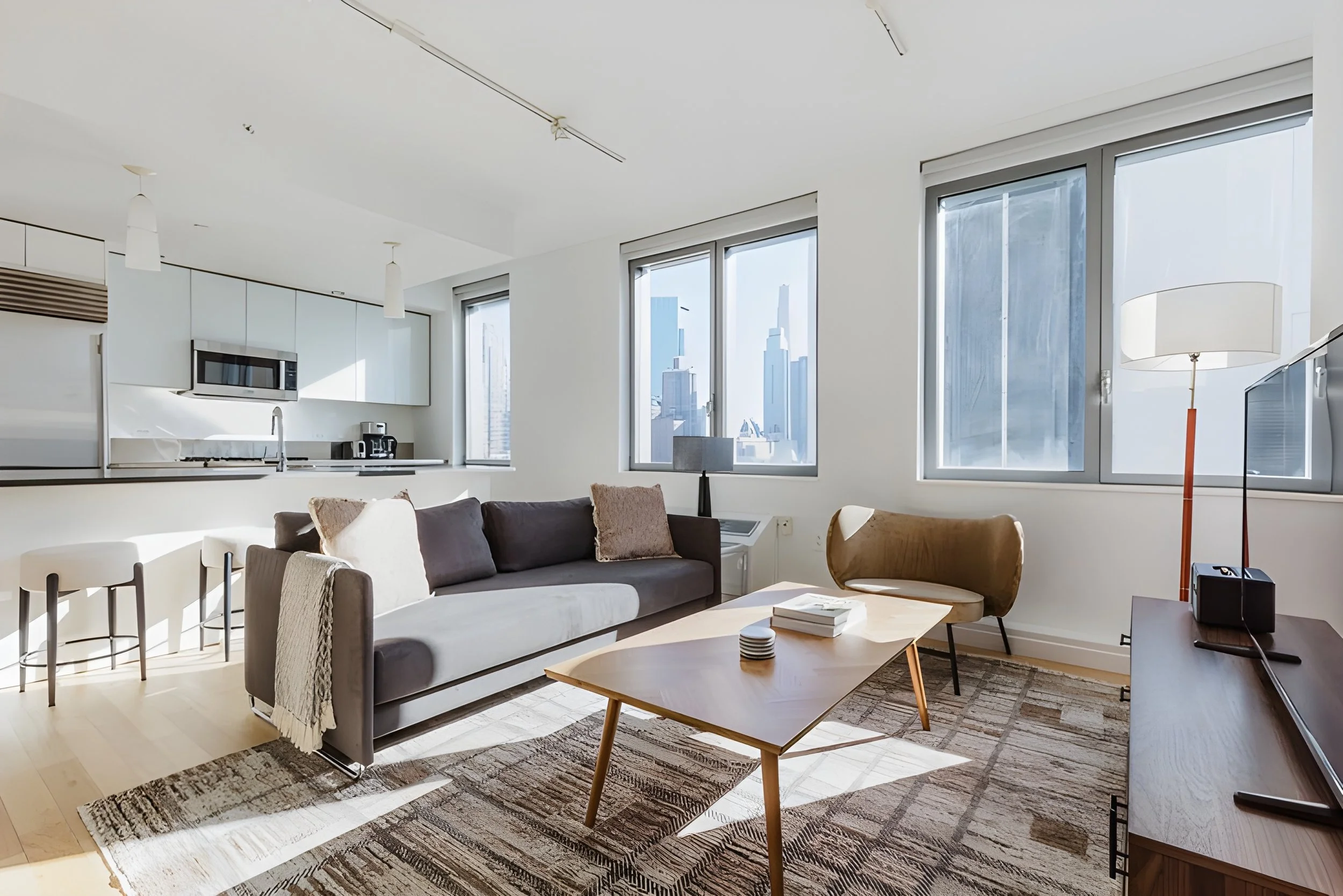 Furnished, high-spec residences in Midtown West, Manhattan, offering contemporary interiors, a gym, basketball court, swimming pool & more.