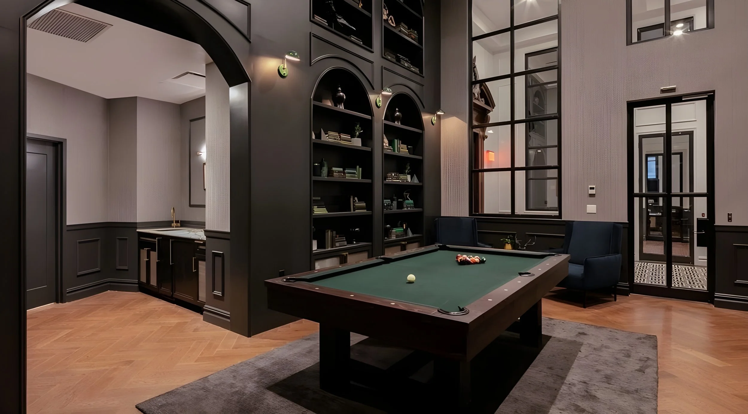 Doorman, lounge area, games room