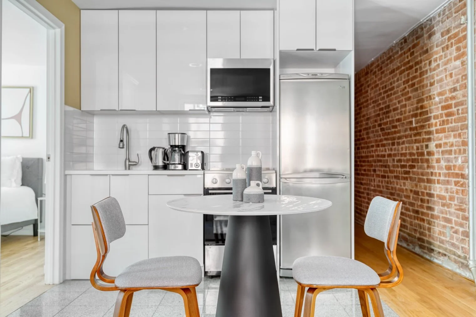 These elegant two-bedroom, one-bath apartments at The Mulberry provide everything needed for a comfortable long-term stay in the city. Offering approximately 60 sq/m (650 sq/ft) of well-designed living space, each apartment is fully furnished with two queen-sized beds and a complete kitchen featuring a dishwasher for effortless cleanup.