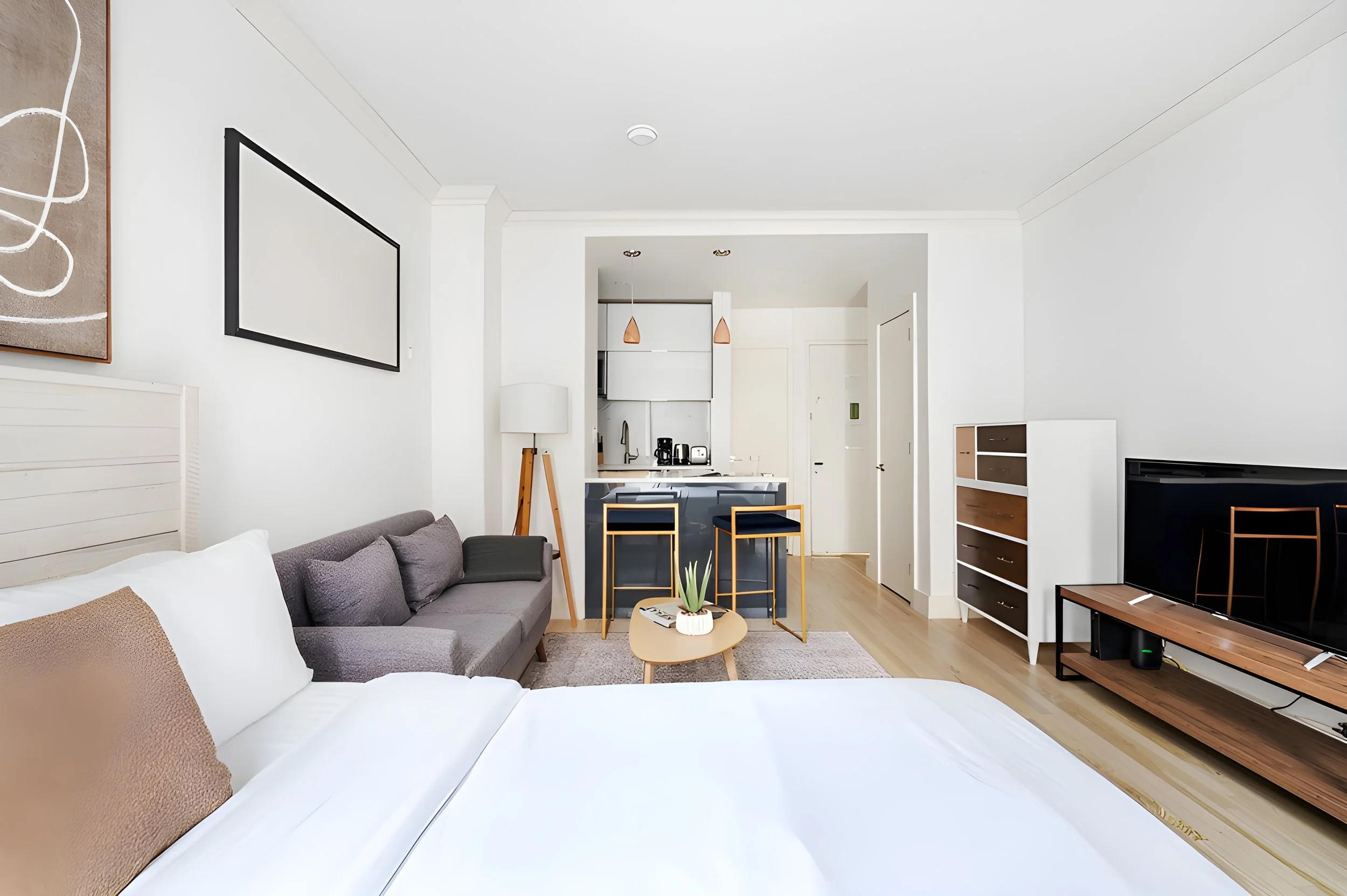 Step into these stylishly designed studio apartments, offering a bright and well-balanced living space with modern, elegant interiors. Fully furnished for a seamless move-in experience, each studio features hardwood floors, a comfortable queen-size bed, and a dedicated desk area, creating a space that’s equally suited for relaxing or working from home.