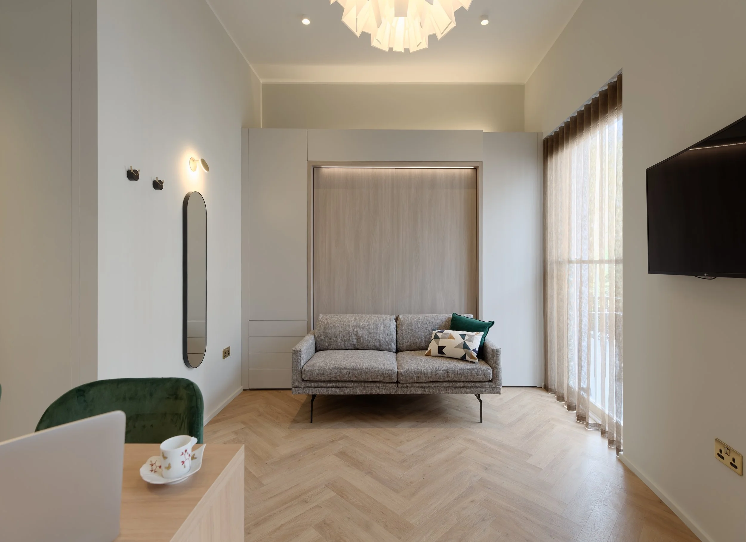 Each studio apartment is beautifully finished with sophisticated, light-filled interiors, featuring oak wooden flooring and underfloor heating for year-round comfort. Fully furnished throughout, the spaces include fully equipped kitchens, smart TVs, and in-unit laundry, creating a seamless and convenient living experience. Selected residences also benefit from private outdoor space, adding an extra touch of exclusivity to this thoughtfully designed home.