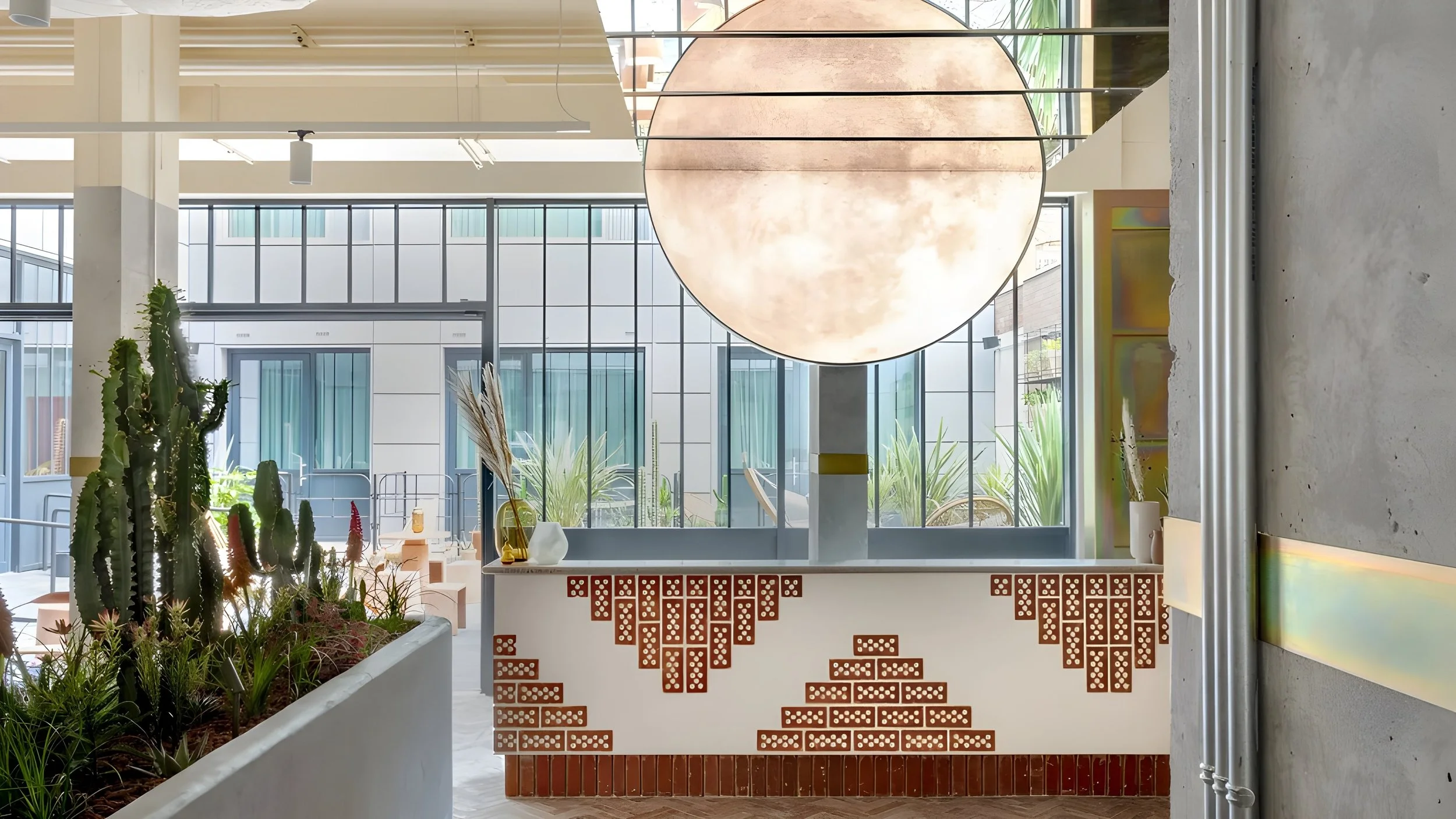 Inspired by the Californian desert, this thoughtfully designed studio is styled in warm, earthy tones and accented with brass, concrete, and rattan details. Leafy plants and succulents bring a natural softness to the space, creating an atmosphere of creativity, calm, and relaxation.
