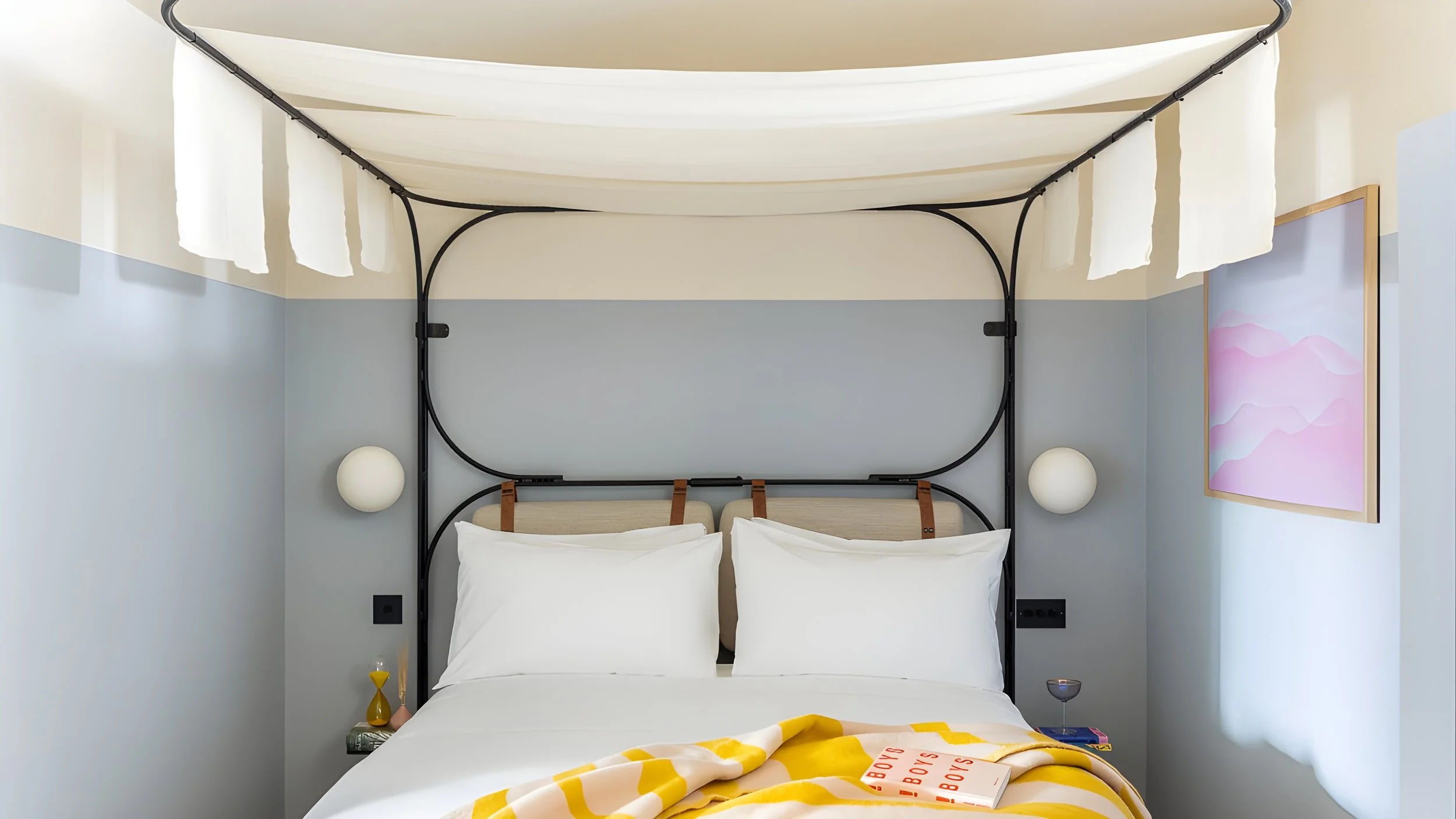 Spanning 29 sq m, the apartment offers a well-considered layout with a separate bedroom featuring a king-size canopy bed and a comfortable living area to relax in. The kitchenette is equipped with a dining table, washer/dryer, fridge/freezer, microwave oven, and a curated selection of designer cooking essentials. A luxurious rainfall shower with Kinsey Apothecary toiletries, along with a Smart HDTV and superfast Wi-Fi, completes this compact yet characterful city retreat.