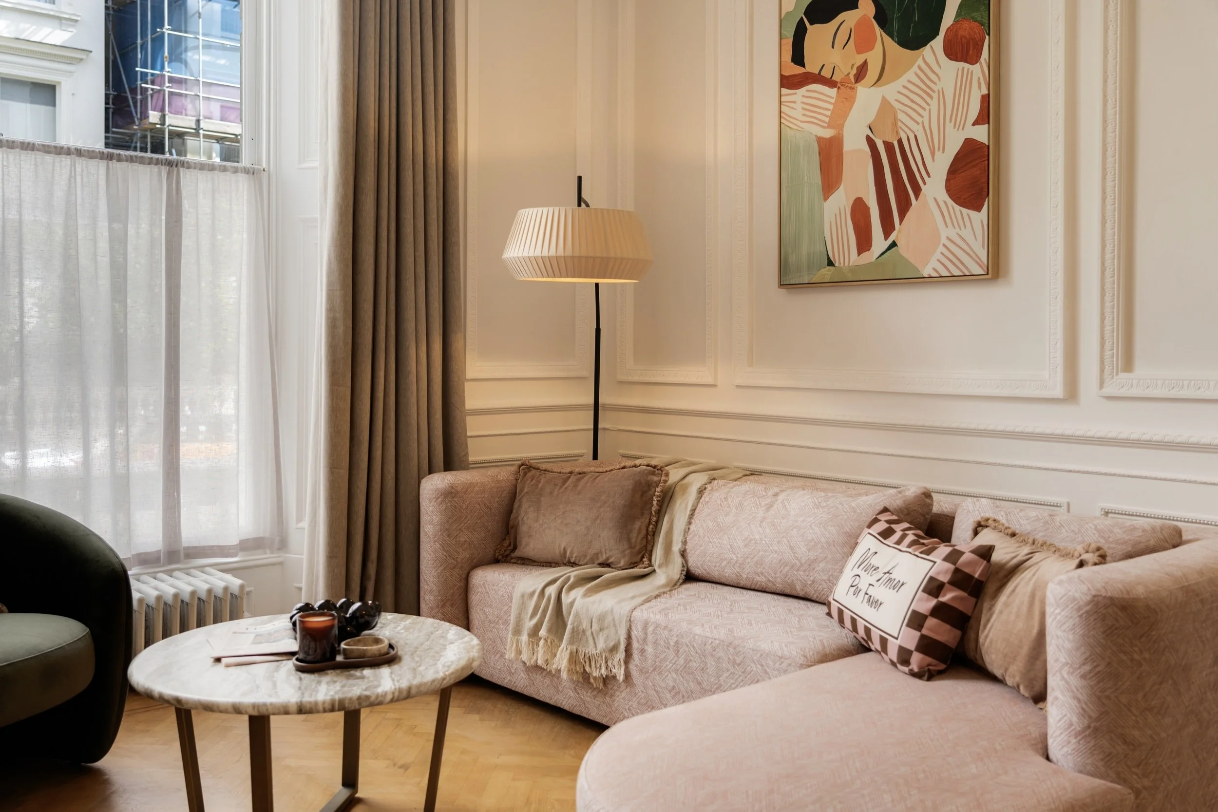 This elegant one-bedroom apartment in Notting Hill offers the perfect balance of space, comfort, and modern design within its 40–45 sq/m layout. The open-plan living area features sleek furnishings, a Smart TV, and a fully equipped kitchen complete with a coffee machine, ideal for both relaxing and entertaining.