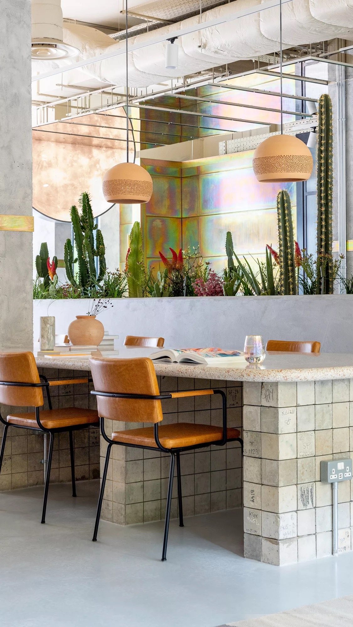 Inspired by the Californian desert, the earthy tones of this apartment are complemented by brass, concrete and rattan. Leafy plants and succulents are abundant. And the vibe is one of creativity, peace and calm.
